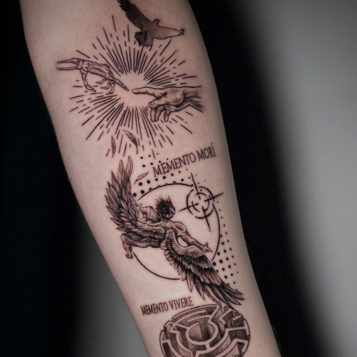 Black & white Wrap around text Tattoo informatie Artiest Ruud van Eijndhoven Stijl Fineline Vorige Volgende