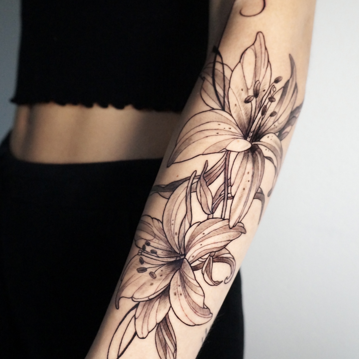 Black & white Flower sleeve Tattoo informatie Artiest Gijsbert Uithol Stijl Fineline Vorige Volgende