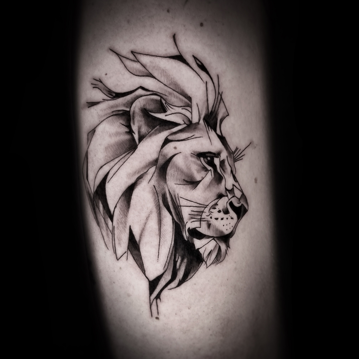 Black & white Fine line lion Tattoo informatie Artiest Orm Grutters Stijl Fineline Vorige Volgende